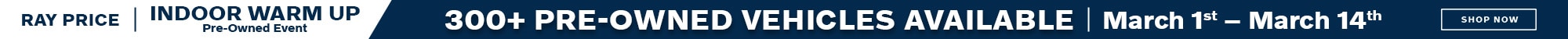 *By clicking "Submit" I agree to receive emails, text messages, and phone calls, which may be recorded and/or sent using automated dialing or emailing equipment or software, from Ray Price Dealerships and its affiliates and business partners in the future, unless I opt-out from such communications. I also agree to the Terms of Use and Privacy Policy. I understand that my consent to be contacted is not a requirement to purchase any product or service and that I can opt-out at any time. I agree to pay my mobile service provider's text messaging rates, if applicable.